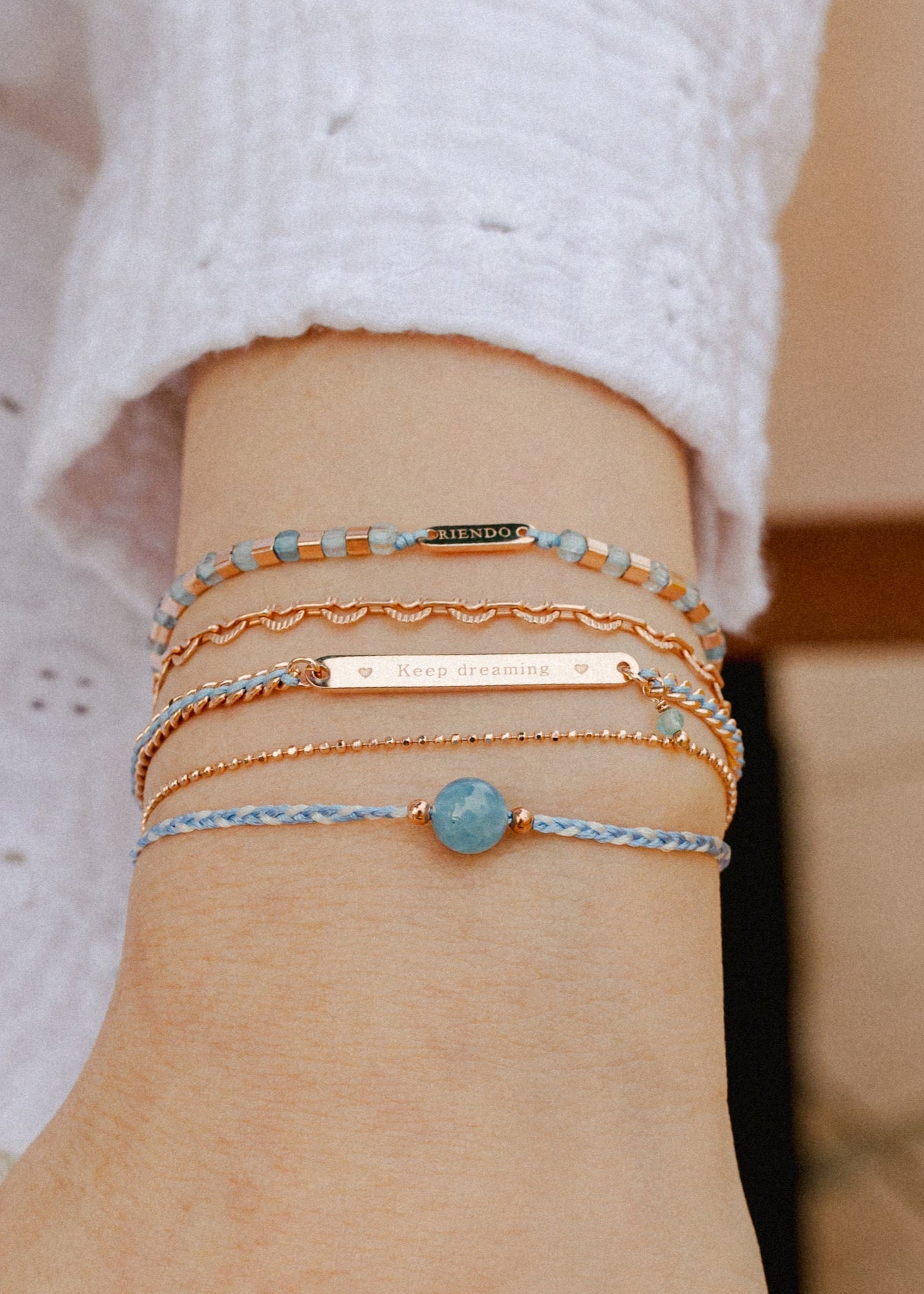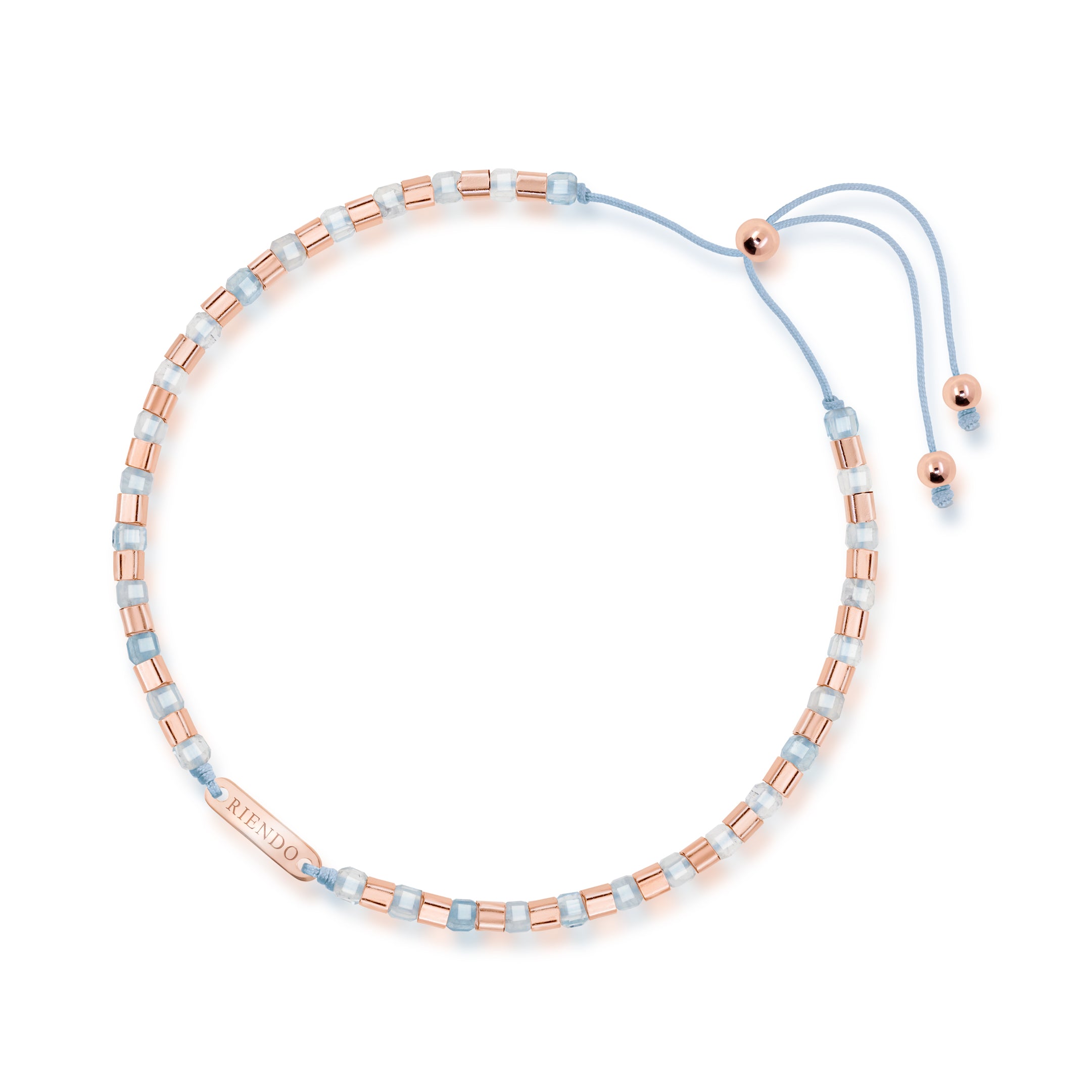 獨特磚形切割的天然晶石與玫瑰金銀珠相間