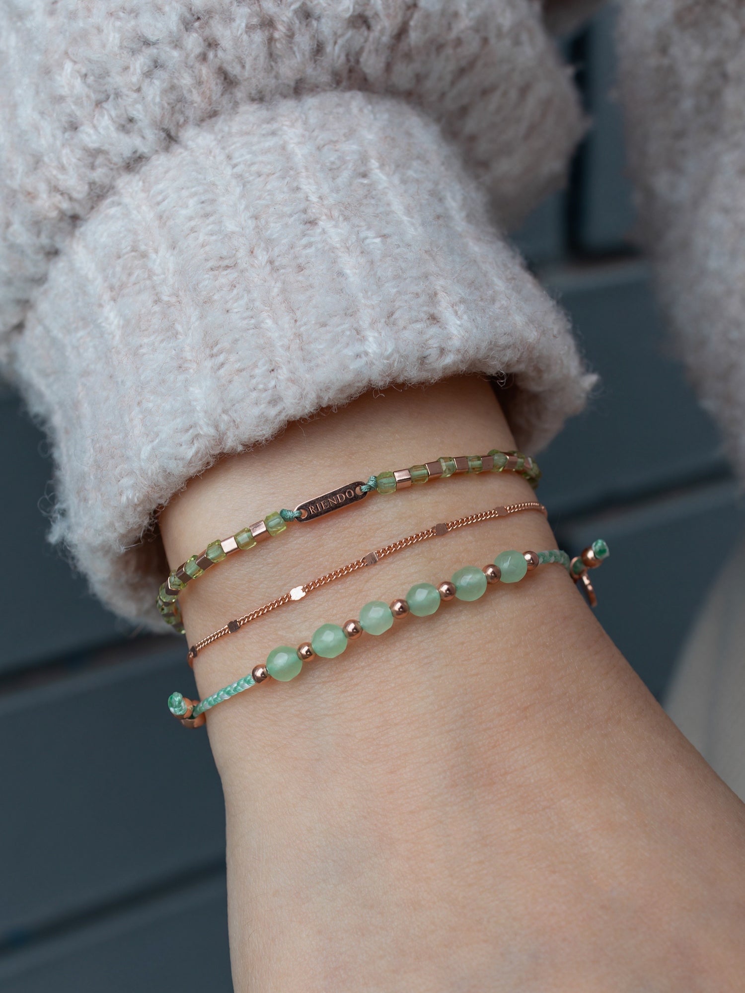 獨特磚形切割的天然晶石與玫瑰金銀珠相間