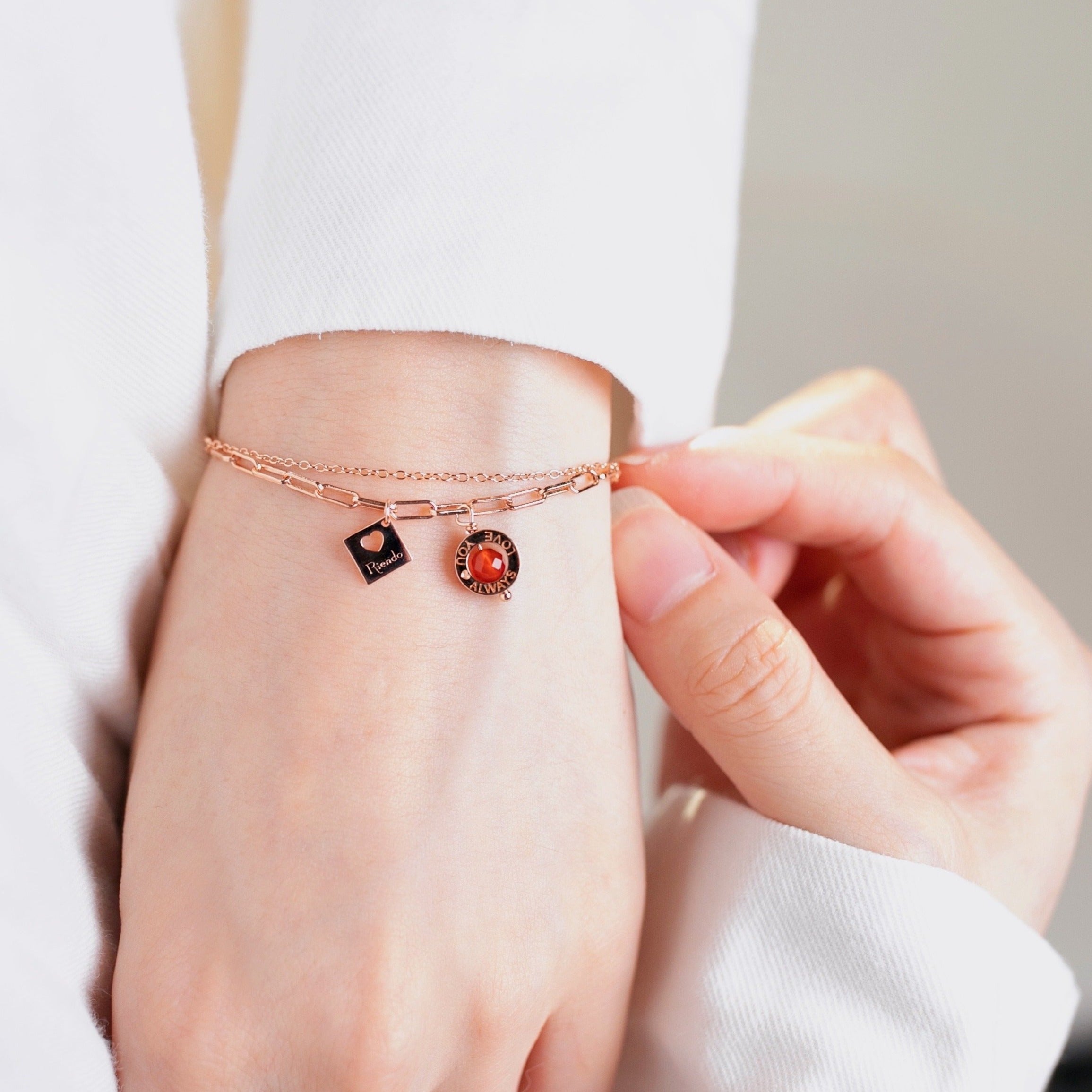 手鍊由粗幼雙鍊結合,塑造層次和懸垂感