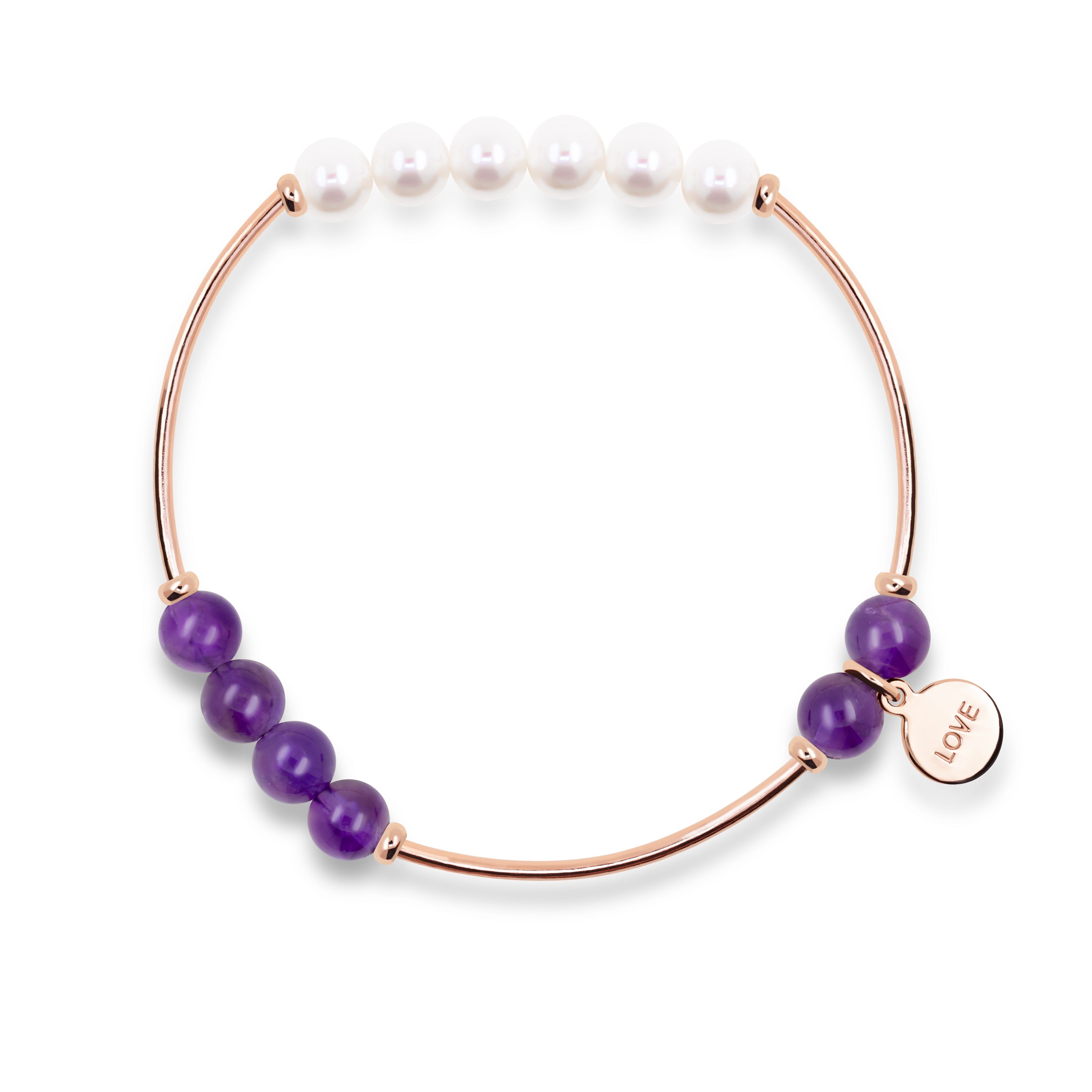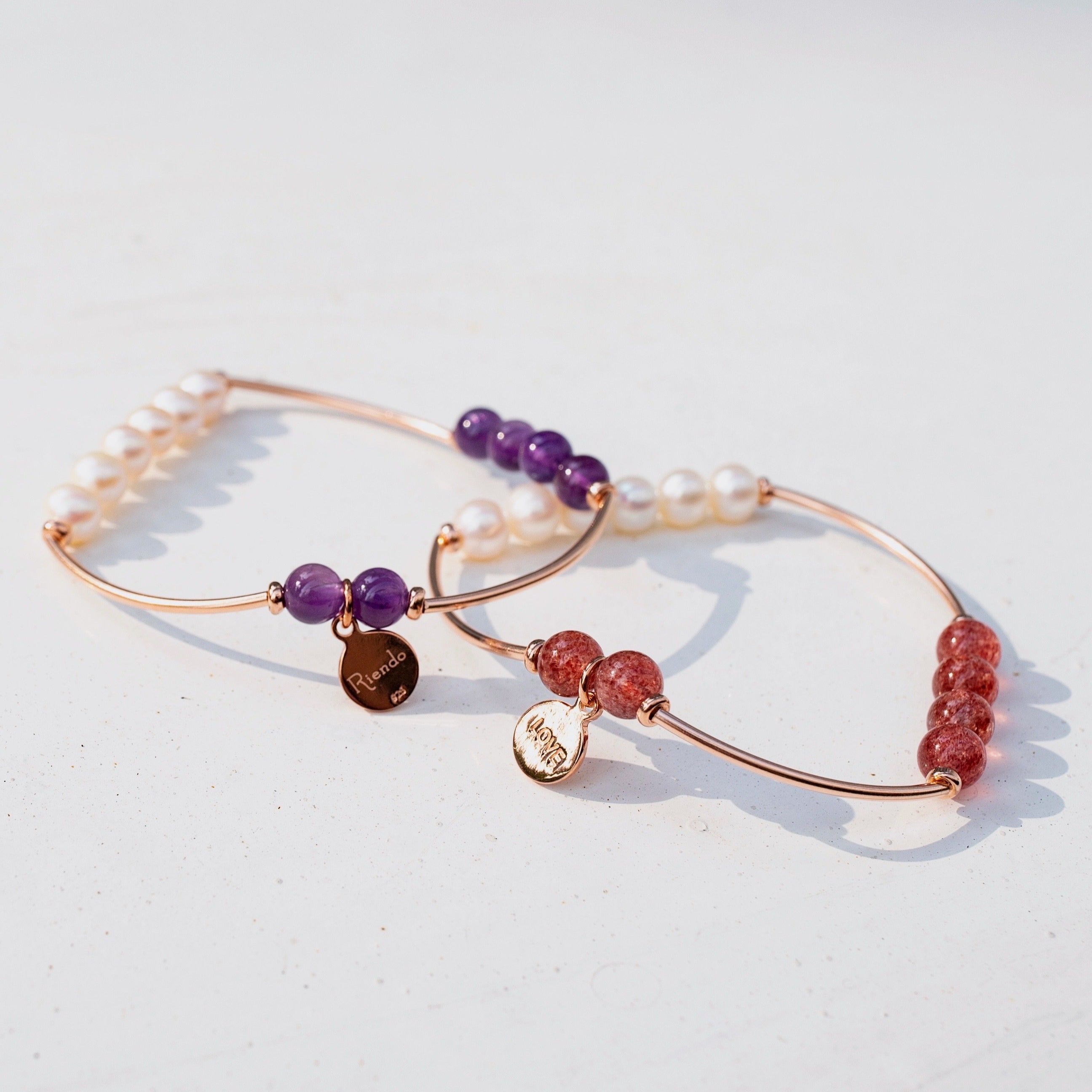天然晶石和珍珠以純銀電鍍玫瑰金配件串連著