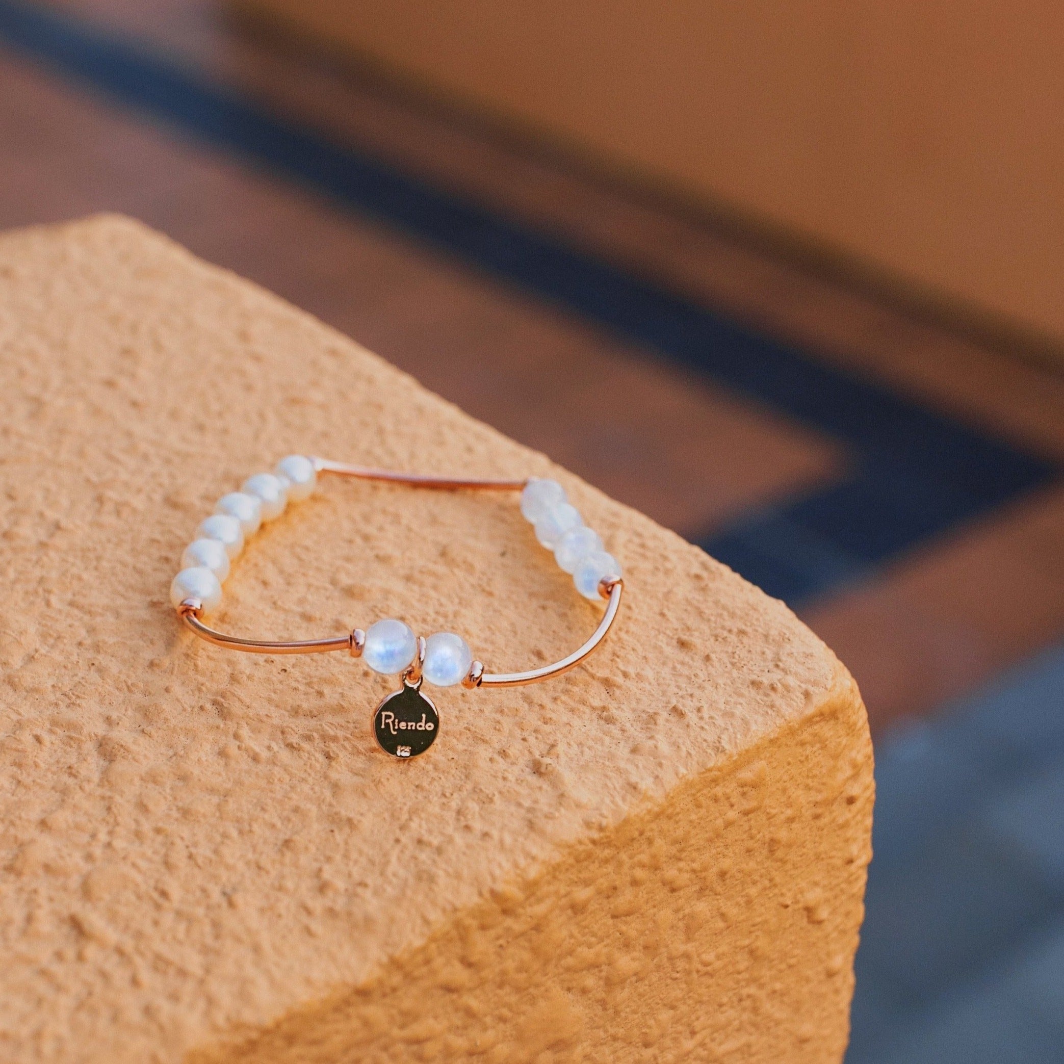 天然晶石和珍珠以純銀電鍍玫瑰金配件串連著