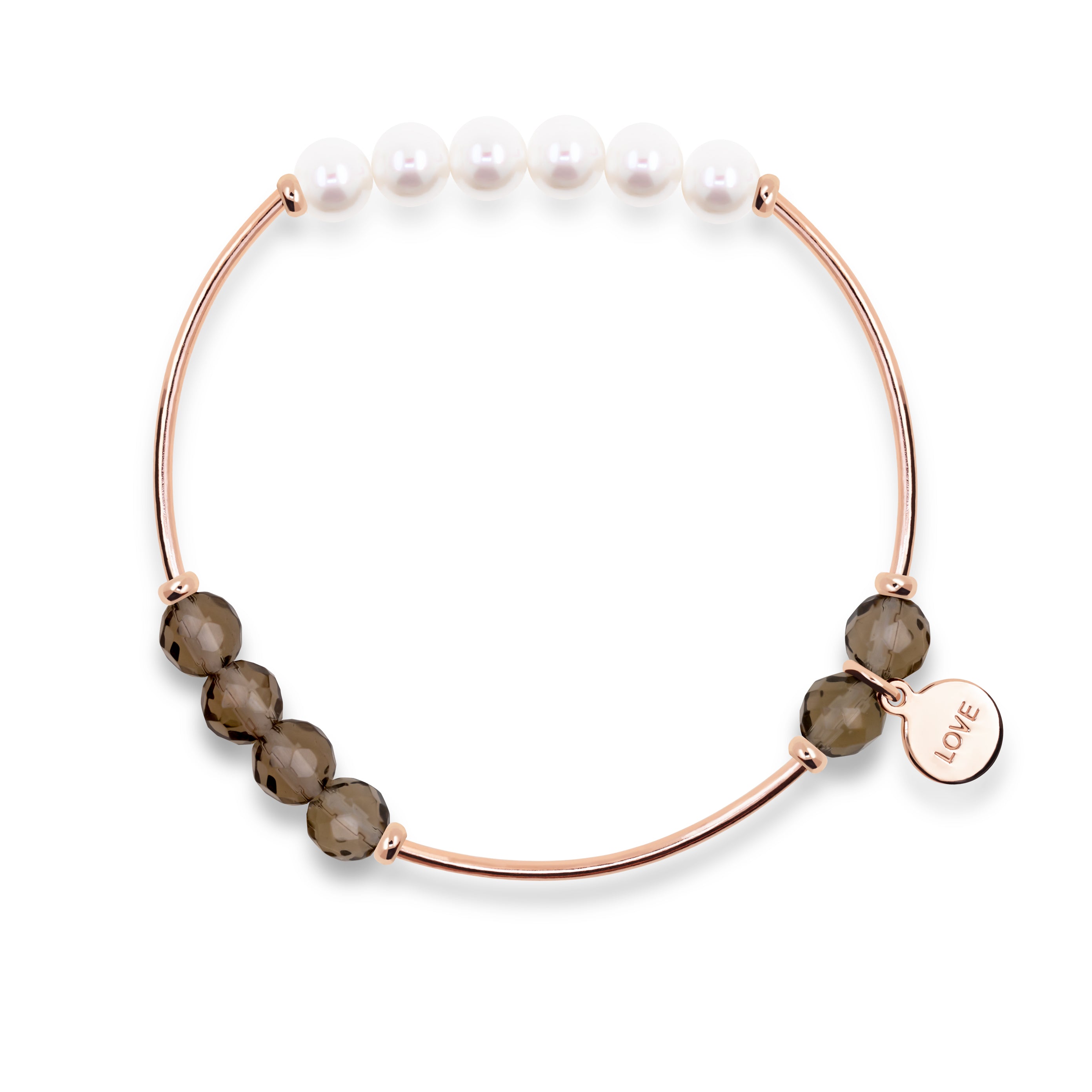 天然晶石和珍珠以純銀電鍍玫瑰金配件串連著