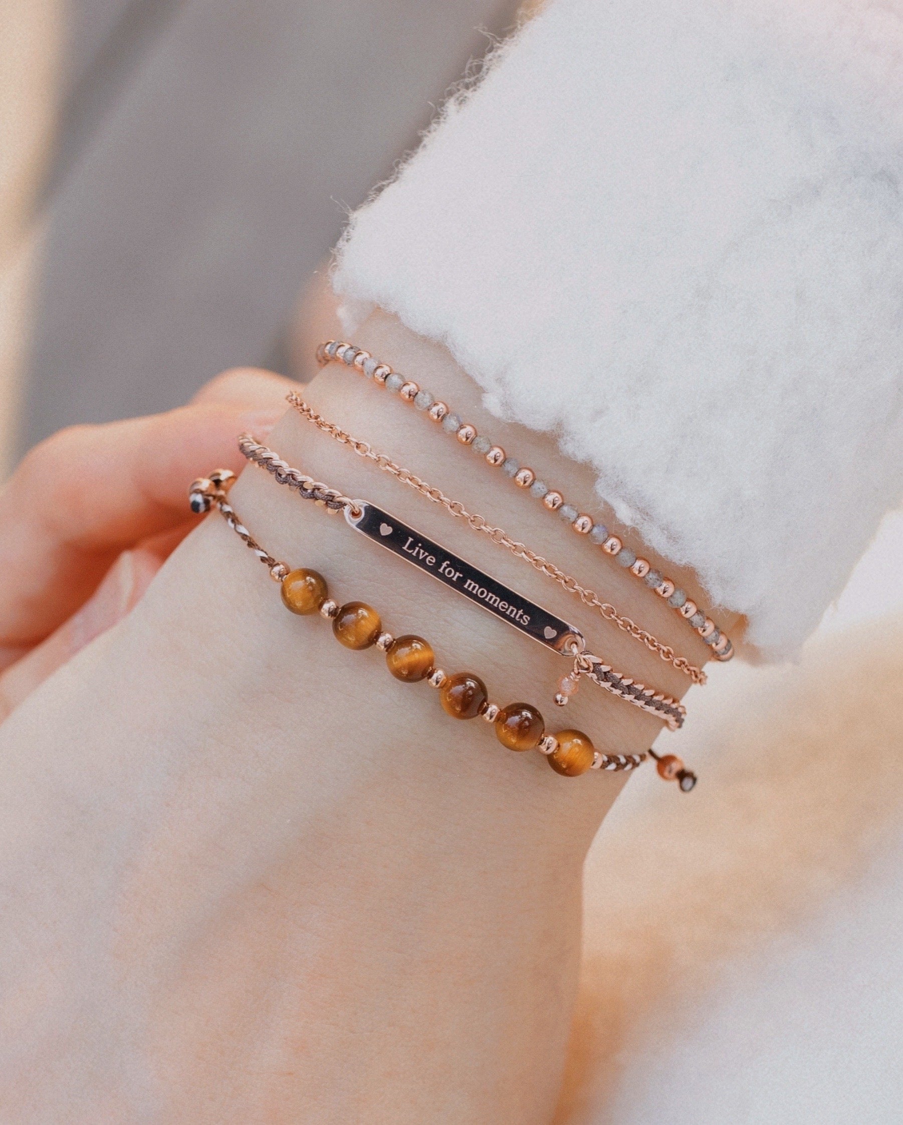 手繩由六粒天然晶石串連而成,