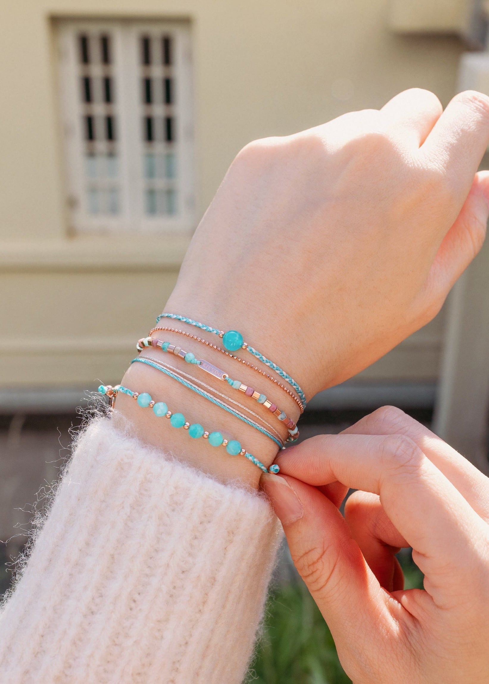 手繩由六粒天然晶石串連而成,